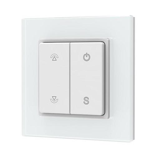 Dviejų klavišų belaidis reguliatorius PF1(G) su stiklo rėmeliu yra skirtas vienos zonos, vienos spalvos LED apšvietimo valdiklių valdymui.