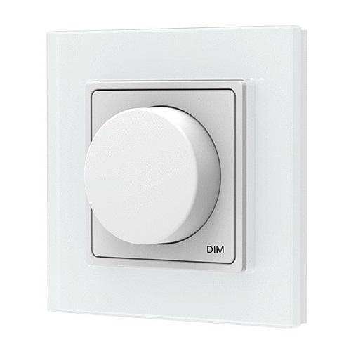 Belaidis RF reguliatorius LED juostoms su ratukiniu valdymu, vienai spalvai reguliuoti, 2.4GHz, 1 zonos, su mechaniniu ratuku, palaiko 50 apšvietimo lygių valdymą, su stiklo rėmeliu.